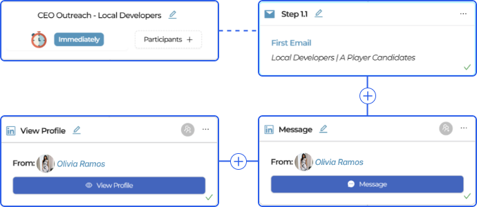 Zileo has built advanced sequencing tools to email, message, Inmail, view profiles, like a post and more to ensure your leads know who you are and see your content.
